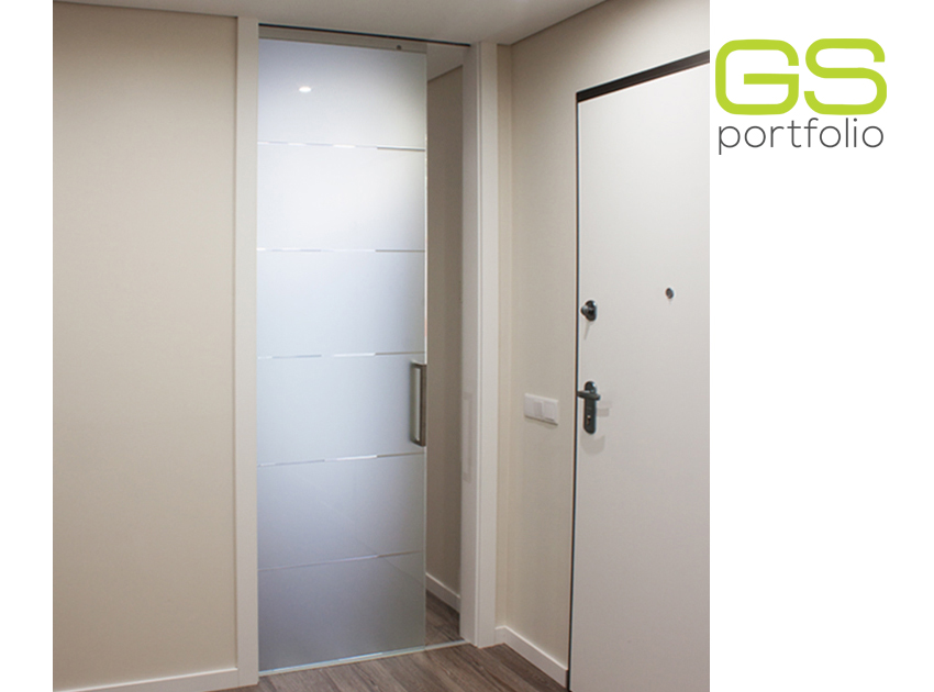 - Cadre de porte coulissante OPENSPACE - Modèle UNICO PLUS. Porte en verre blanc mat avec coins et garniture laquée blanc mat.