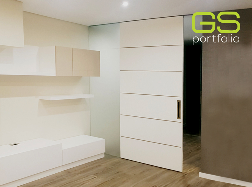 - Placard encastrée GS CONCEPT avec portes battantes en laqué blanc mat.