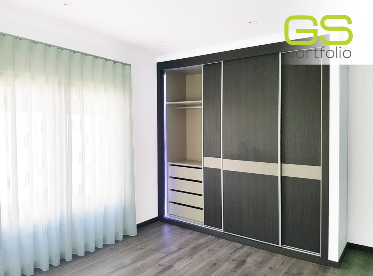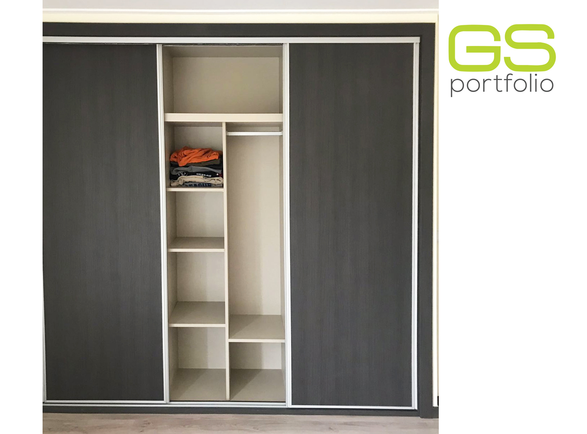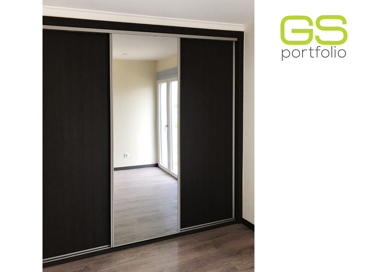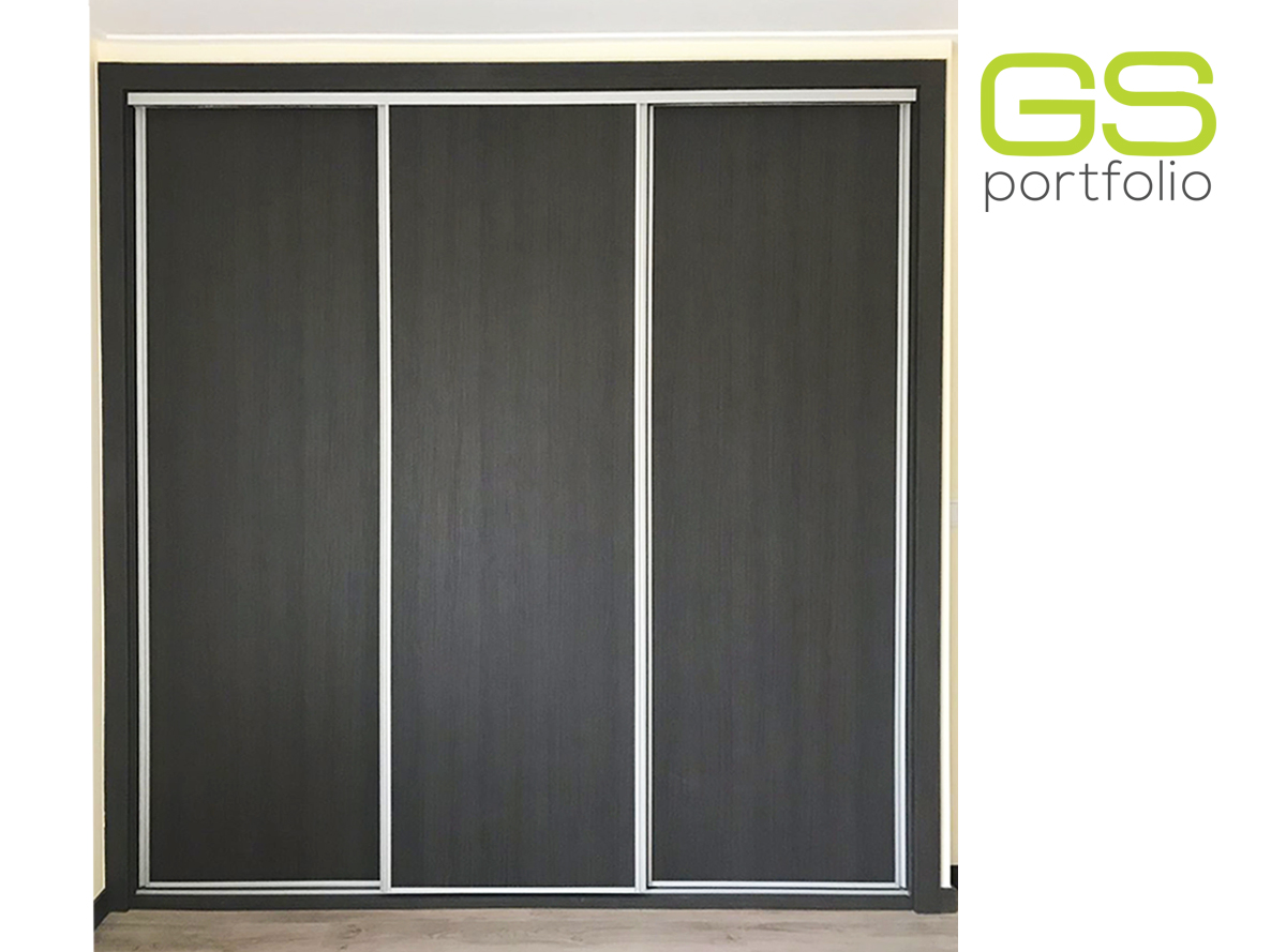 - Armario empotrado GS CONCEPT con 3 puertas correderas en vinilo: Marrón Roble y tirador de perfil lateral de aluminio.