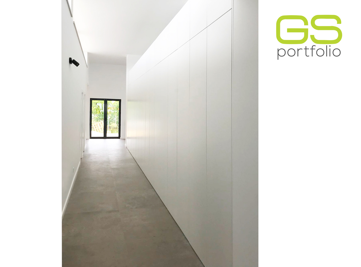 - Placard encastrée GS CONCEPT avec système d'ouverture tic-tac, avec portes laqués blanc mat. Développée sur tout le couloir de la maison.